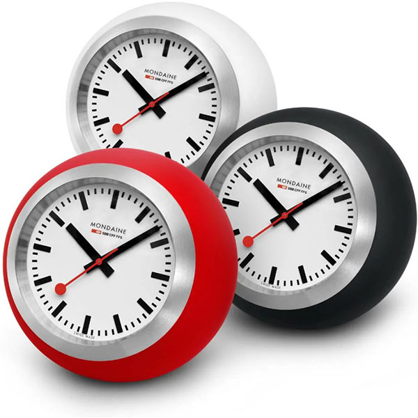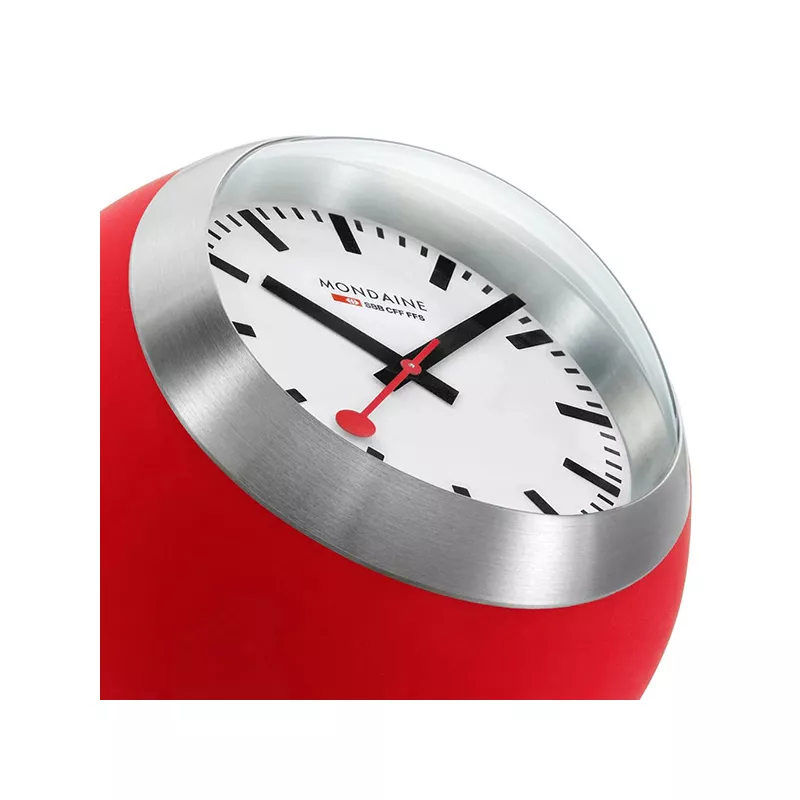 MONDAINE Globe Clock, Quartz Tischuhr, SBB Bahnhofsuhr, rot