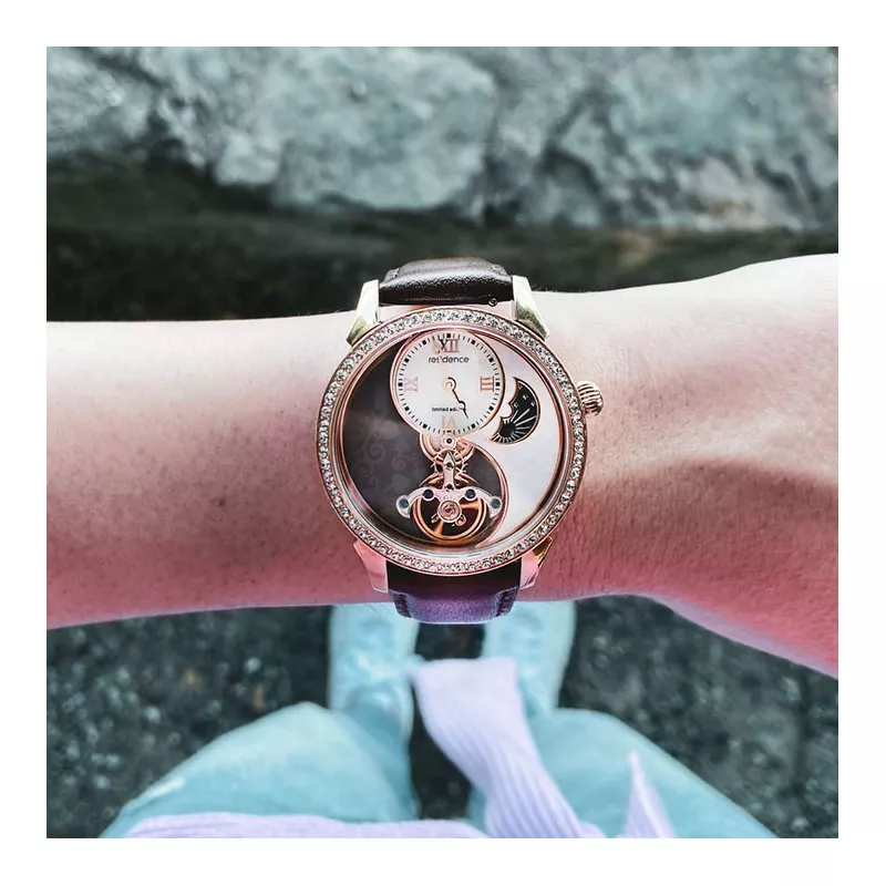 RESIDENCE Automatikuhr, Yin Yang Tag+Nacht Crystals vergoldet