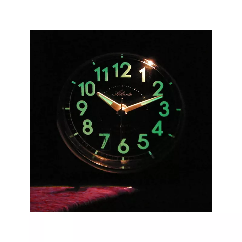 Der Alarm lässt sich durch den grossen Knopf an der rechten Gehäuseseite an-/ausschalten, das ist besonders praktisch und seniorengeeignet. Wahlweise laut oder sehr lauter Glockenalarm (mit leichter Vibration). Die Zeiger und das Ziffernblatt sind fluoreszierend (selbstleuchtend) und damit auch bei Dunkelheit sehr gut ablesbar. Zudem lässt sich per Knopfdruck ein Licht zuschalten. Die praktische Schlummertaste unterbricht den Alarm für ca. 5 Minuten und weckt dann erneut los.