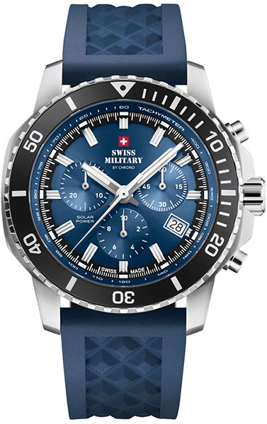 SWISS MILITARY Solar Chronograph 43 Edelstahl blau