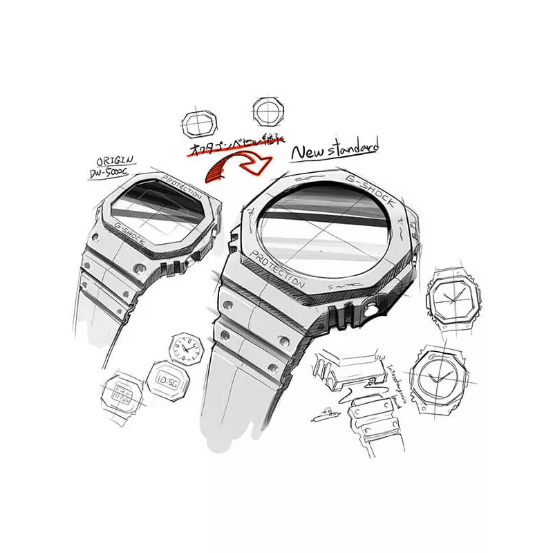 Die sorgfältig geschmiedete und polierte, gleichmässig achteckige Edelstahllünette vereint ein einfaches, unkompliziertes Design mit einem raffinierten, aber robusten Look. Das aus hochfestem glasfaserverstärkten Stahl-Gehäuse ist mit nur 12 mm das schlankeste aller G-SHOCK Analog-Digital-Modelle.