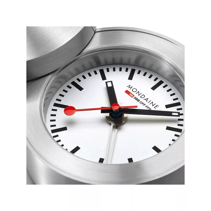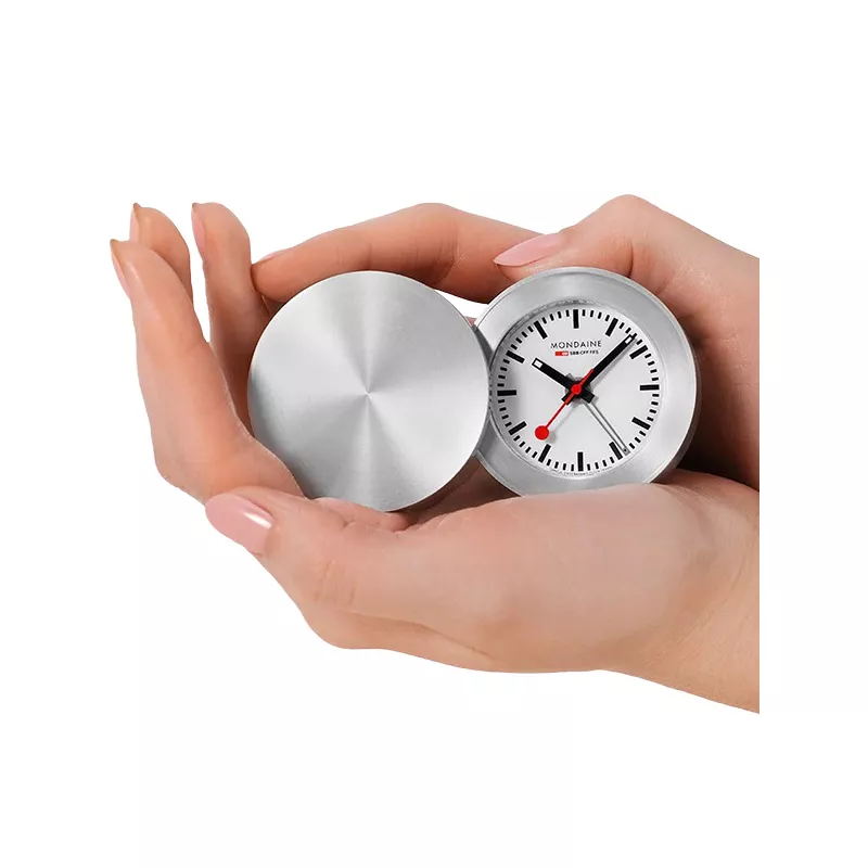 MONDAINE Travel Alarm Clock, Reisewecker, SBB Bahnhofsuhr Alu