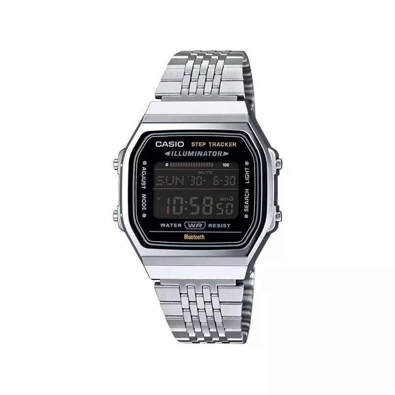 Vintage Iconic: Casio Conneted Watch. Genaue Uhrzeit via Smartphone. Ist die Uhr an ihr Mobilltlefon gekoppelt, wird die Uhrzeit automatisch eingestellt und zeigt so weltweit die aktuelle Ortszeit.