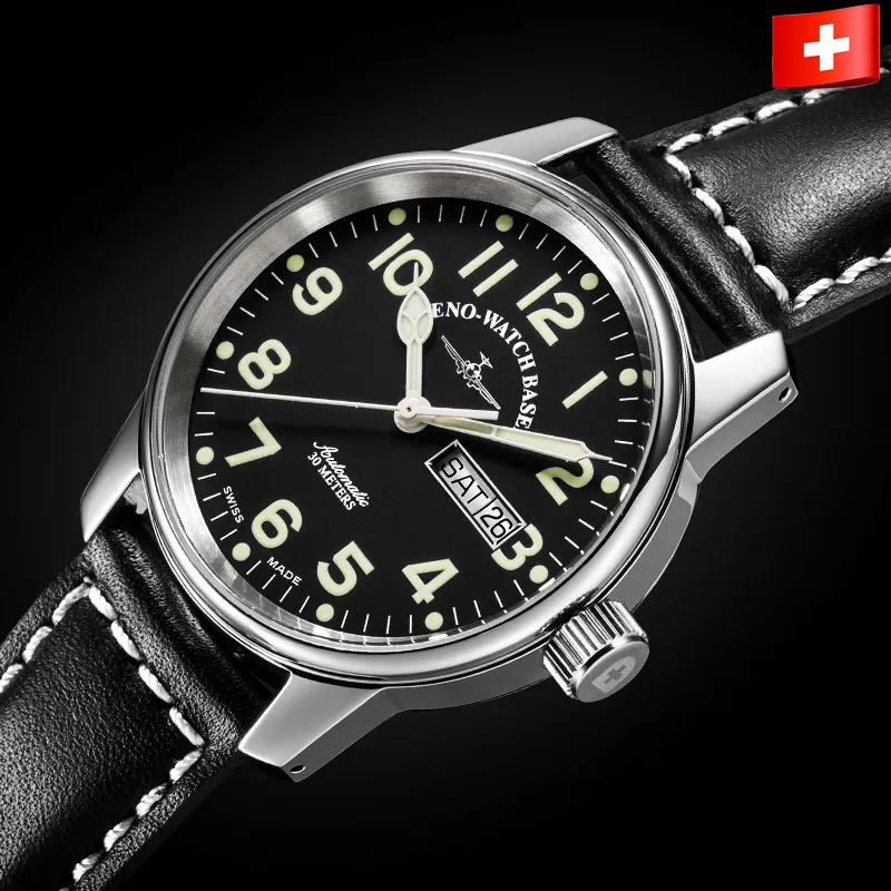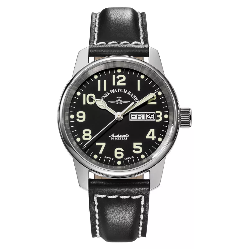 Die beliebteste mechanische Pillotenuhr mit Tages- und Datumsanzeige. Hochwertiges traditionelles mechanischem Automatikuhrwerk. ZENO-WATCH BASEL - Unabhängige Schweizer Uhrenfabrikation seit 1922. Spezialist für grosse Fliegeruhren.