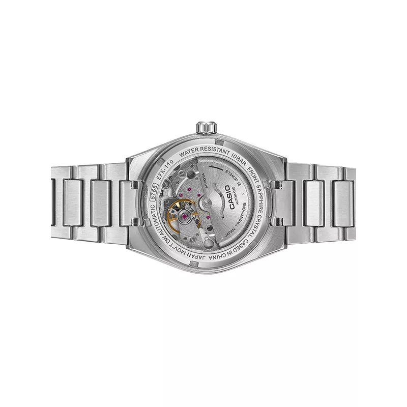 Mechanik trifft Motorsport – eine neue Ära für EDIFICE. Die neuen mechanischen CASIO Uhren mit automatischem Uhrwerk. Der durchsichtige Gehäuseboden gibt den Blick auf das bewegte Uhrwerk frei und bietet den einzigartigen Charme einer mechanischen Uhr. Das speziell gefertigte Zifferblatt verleiht der Armbanduhr einen einzigartig strukturierten, sportlichen und dennoch raffinierten Look.