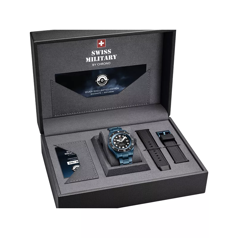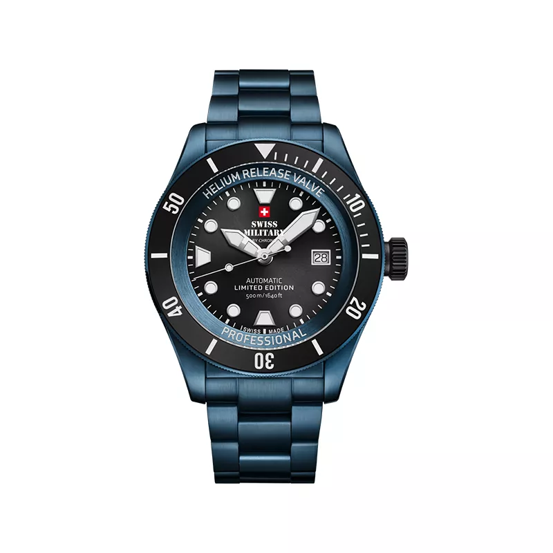 Swiss Military ProDiver 500, Automatik Taucheruhr, Limited Edition blau SET