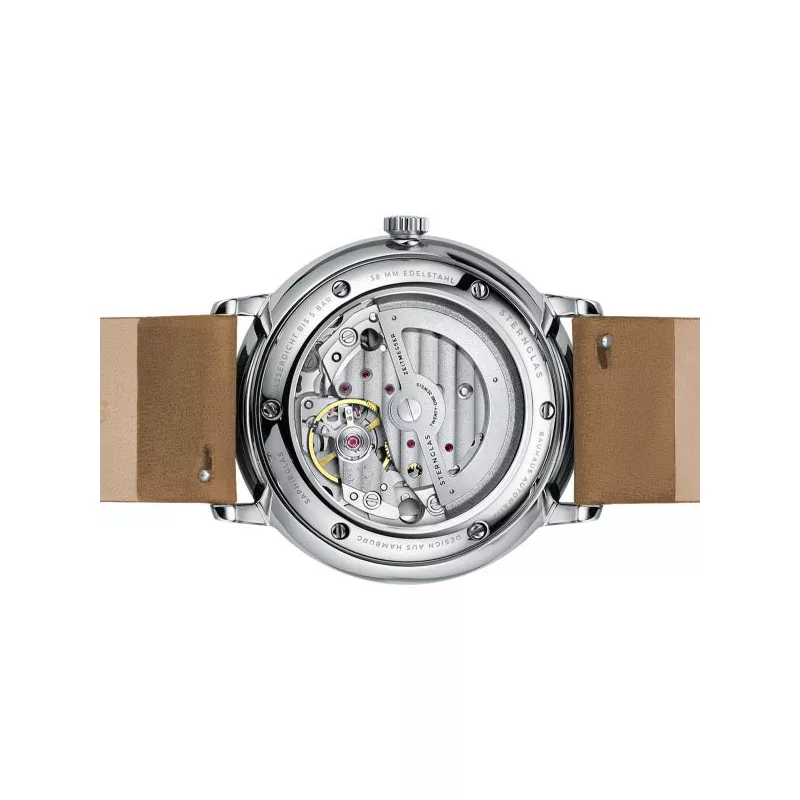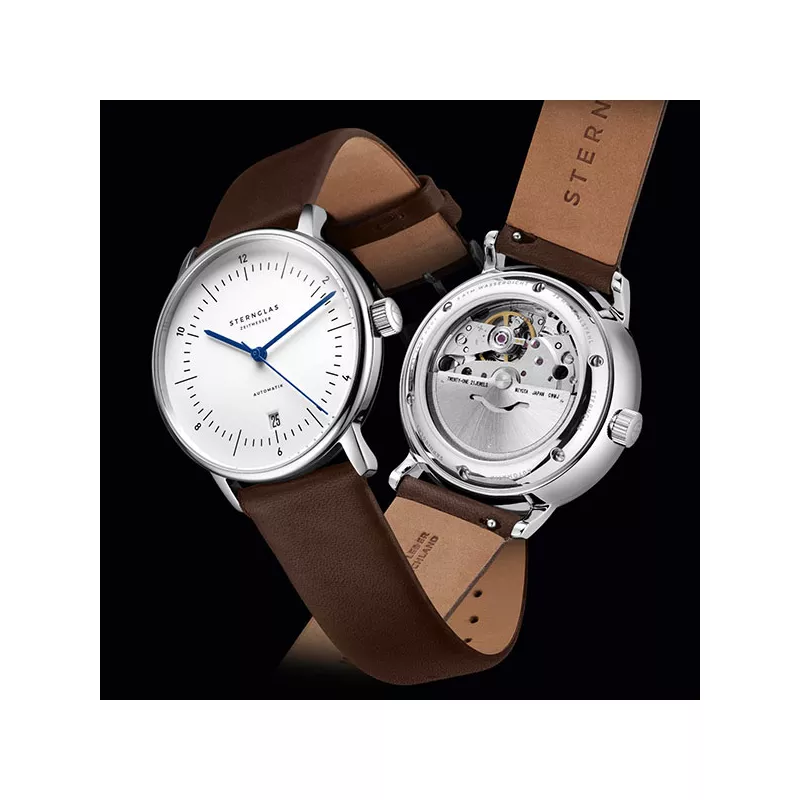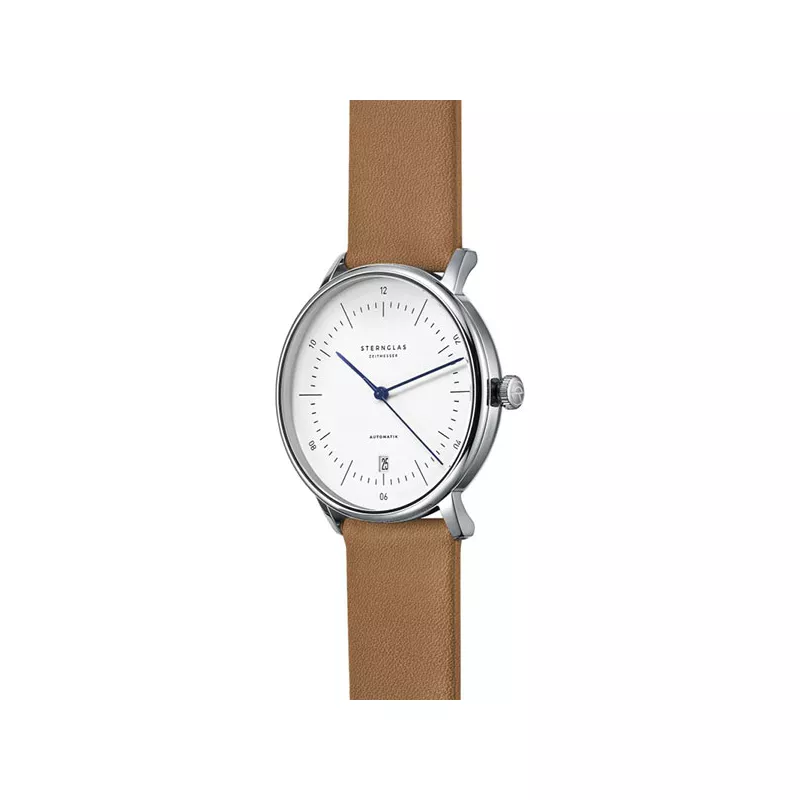STERNGLAS Naos 38 Automatikuhr weiss Stahl, Leder hellbraun