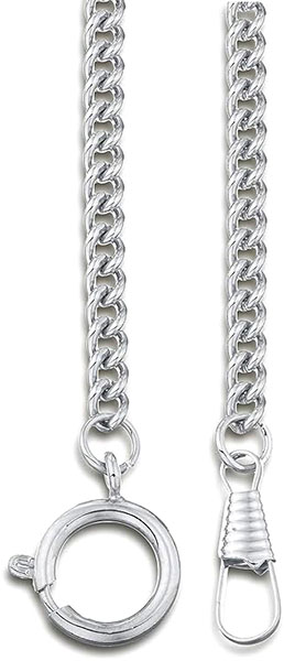 Gerade für die Nutzung verchromter Taschenuhren ist die zuverlässige Panzerkette bestens geeignet. Natürlich kann sie auch für alle anderen Taschenuhren verwendet werden. Sie besitzt einen praktischen Karabiner, der eine Länge von 2 cm aufweist. Der Federring hat einen vorteilhaften Durchmesser von ca 16-17 mm. Letzter kann ganz einfach am Hosenbund oder Deinem Gürtel befestigt werden. Somit bist Du stets perfekt ausgerüstet und kannst Deine edle Taschenuhr sicher und komfortabel transportieren.
