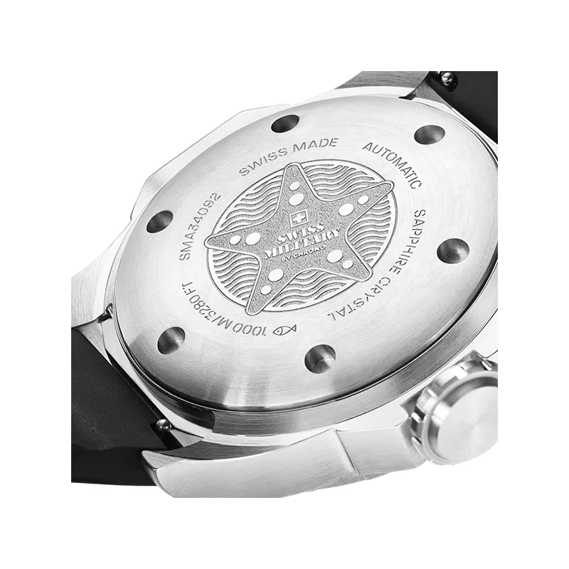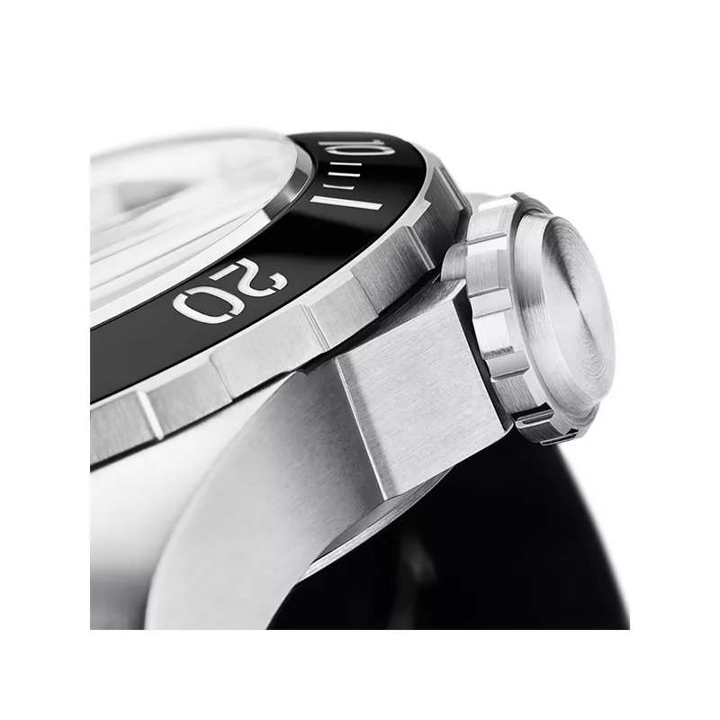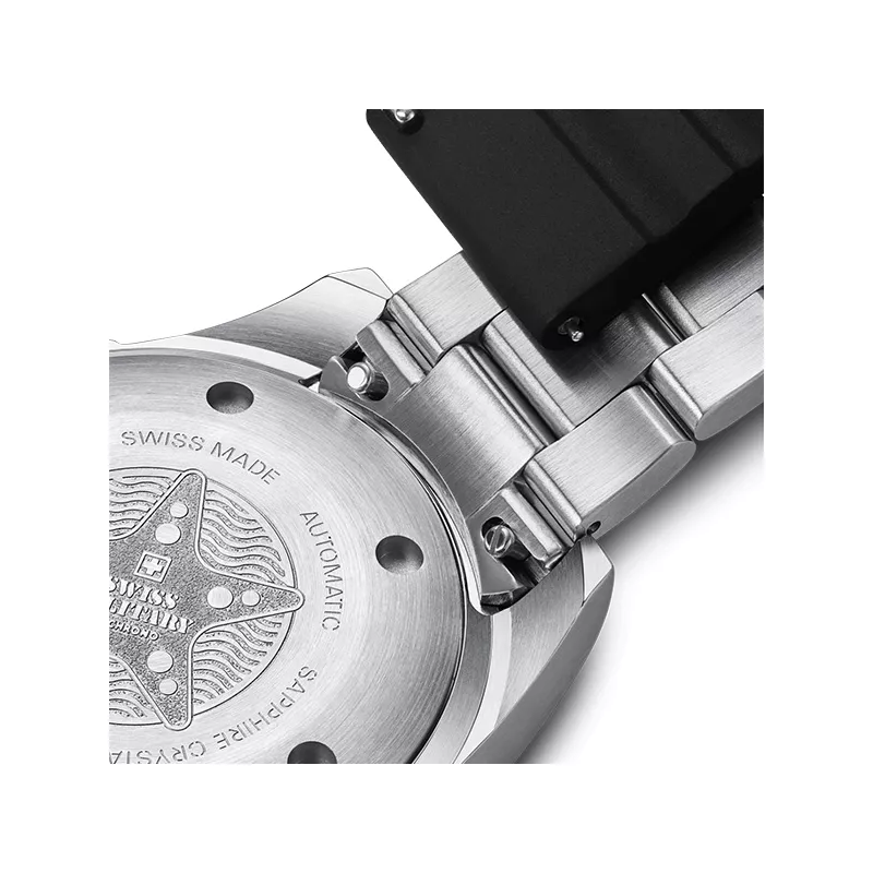 Die 45mm grosse, professionelle Schweizer Taucheruhr. Ihr blau beschichtetes Edelstahlgehäuse, das markante Zifferblatt und die professionelle Lünette verleihen ihr eine starke Präsenz, die sowohl zur Tauchausrüstung als auch zur Geschäftskleidung passt.