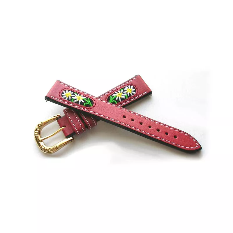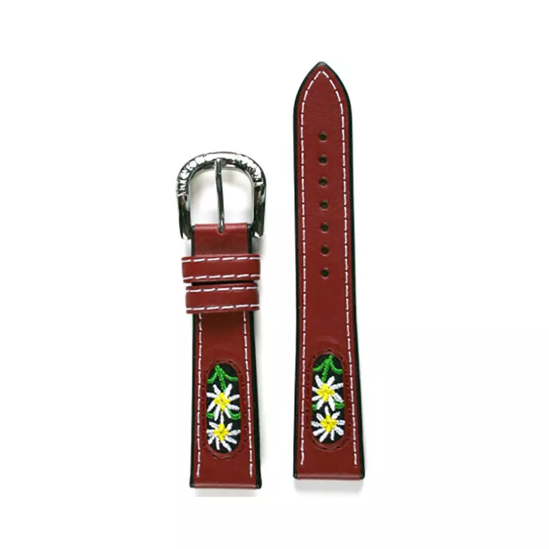 In unserer Uhren Bijouterie zeigen wir Ihnen auch alternative Lederbänder mit Schweizer Blumen-Dekor von anderen Herstellern.