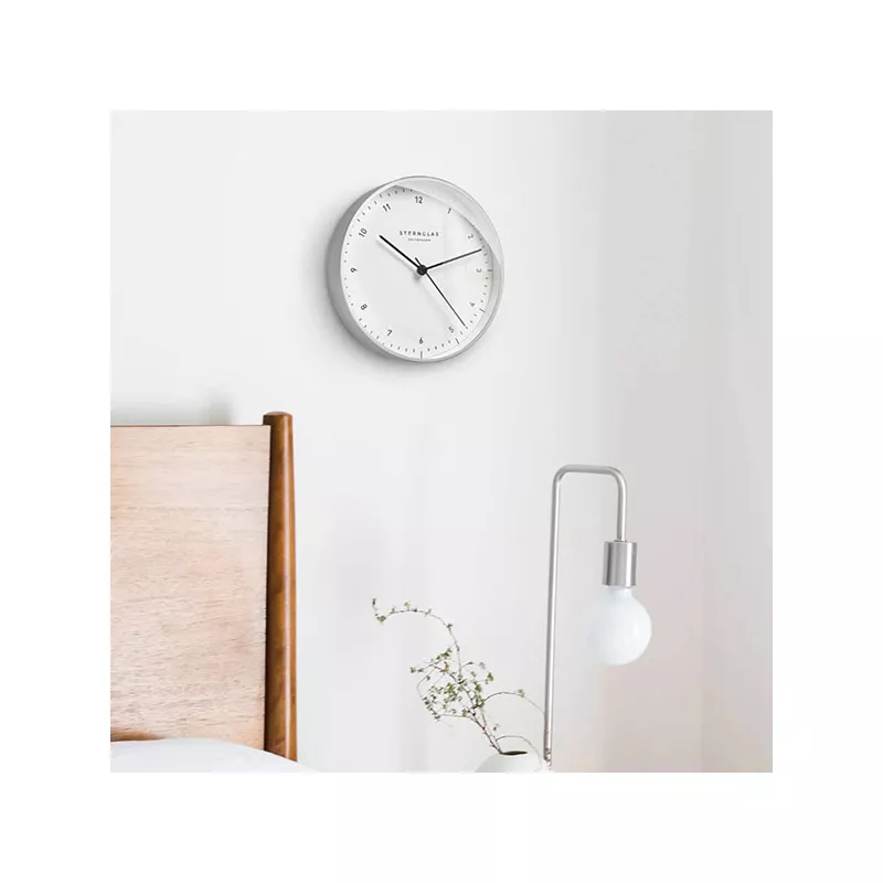 Le design simple du Bauhaus avec le cadran blanc, les aiguilles et le boitier gris confèrent à l'horloge murale une élégance intemporelle. Les horloges de salon de Sternglas sont de haute qualité, faciles à lire et extrêmement précises.