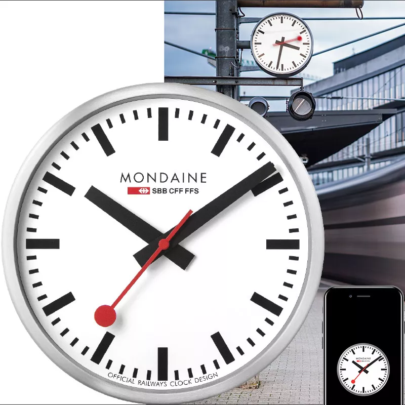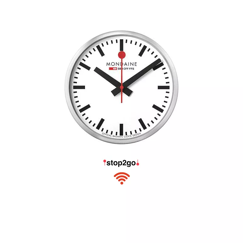 Mondaine Wall Clock, horloge de gare Stop2Go CFF WiFi A995.CLOCK.16SBB