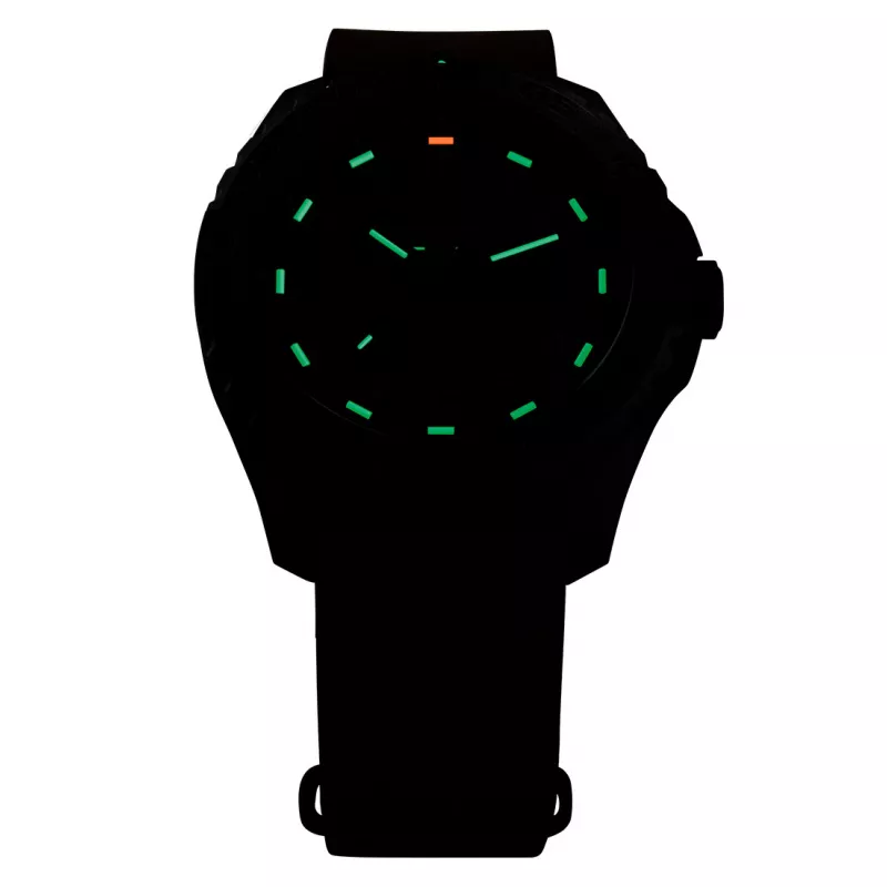 Les tubes miniatures enrichis en tritium assurent un éclairage permanent qui assure la lisibilité jour et nuit. Le système d’éclairage H3 suisse breveté est une technologie ultramoderne qui est également utilisée par l’armée américaine. La montre avec affichage de jour et de date intégré en construction conteneurisée dispose d’un boîtier intérieur en acier inoxydable et d’une couronne vissée, d’un boîtier extérieur renforcé en fibre de verre en plastique et d’une lunette en acier en acier tournant sur les deux faces. En outre, les montres TRASER convainquent avec leur étanchéité jusqu’à 200 mètres.