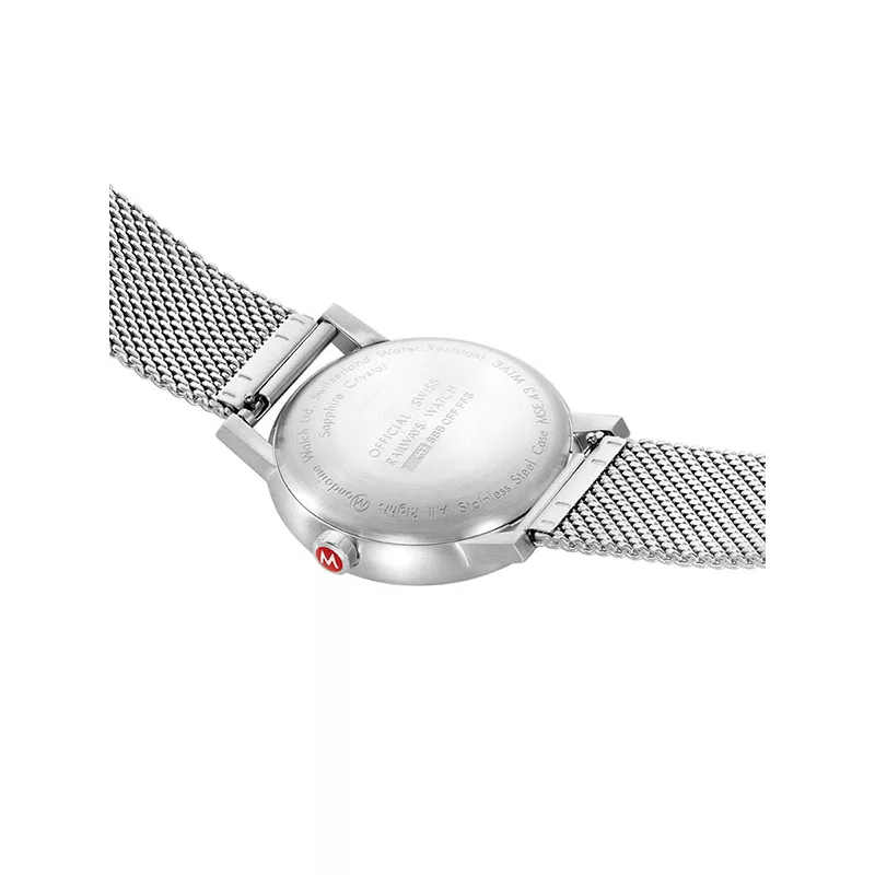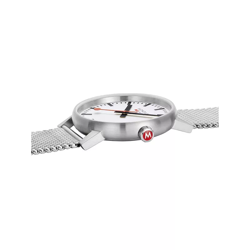 Cette nouvelle version MSE.43110.SJ la montre MONDAINE de la gare a été étirée en profondeur pour répondre aux exigences de la vie quotidienne moderne et équipée d’un verre saphir résistant aux rayures pour une meilleure lisibilité et une protection supplémentaire. La forme légèrement arrondie avec une transition presque sans couture vers l’arrière du boîtier a été conçue pour un confort de port ultime d’un point de vue ergonomique. Une couronne de bannières et une couronne fonctionnelle remaniée dans des proportions parfaitement alignées. Un design suisse intemporel avec un certain quelque chose.