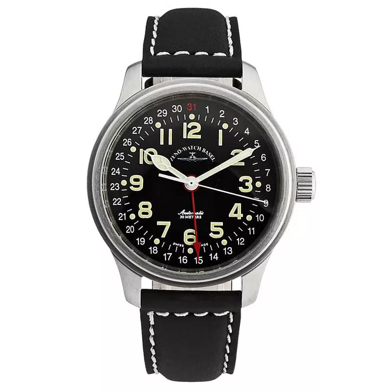 ZENO-WATCH BASEL, New Pilote Classic, montre d'aviation automatique Pointer Date
