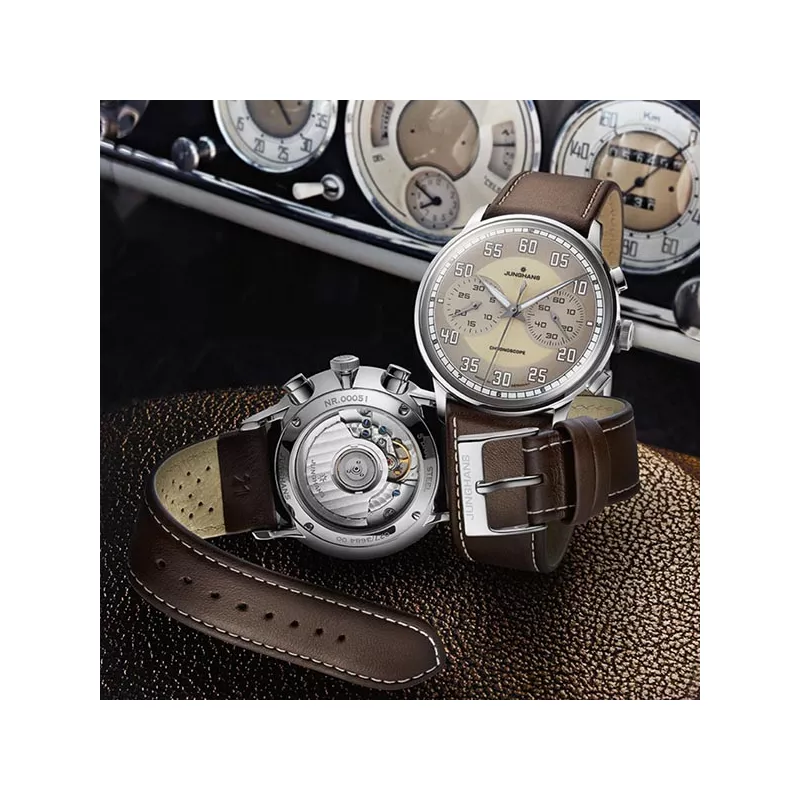 Les montres JUNGHANS Meister combinent la conception traditionnelle les montres JUNGHANS avec des accents de modernité. Elle séduit à la fois par son élégance classique et simple et sa technique innovante. Le Maître Driver témoigne de la fascination pour l’automobile et invite à un tour de l’heure pionnière de la voiture jusqu’ici et maintenant.
