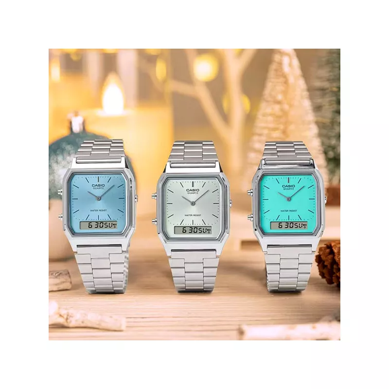 CASIO Digi-Analog Retro, montre AQ-230 bleu glacier