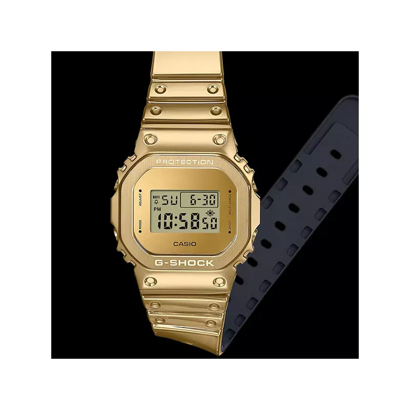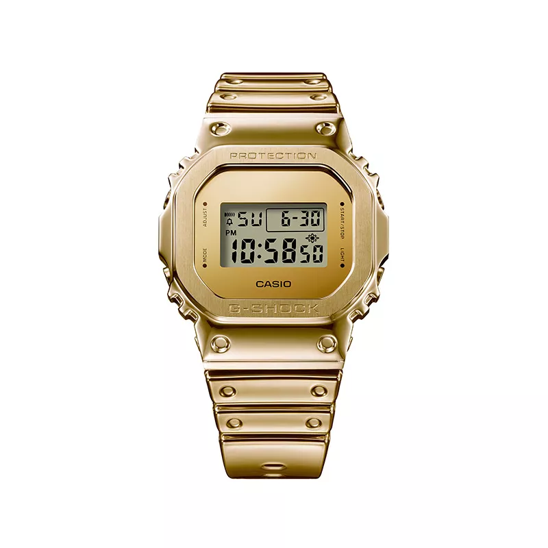 The Origin. Le design d’origine comme la première montre G-Shock de 1983 mais en acier inoxydable. Montre multifonction LCD avec alarme et fonction d’arrêt. 200 mètres d’étanchéité et super résistant au shock.