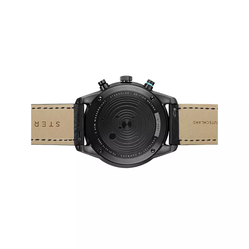 Le chronographe à quartz noir est à la fois simple et saisissant. Édition Tachymètre Meteor, noir Modena.
