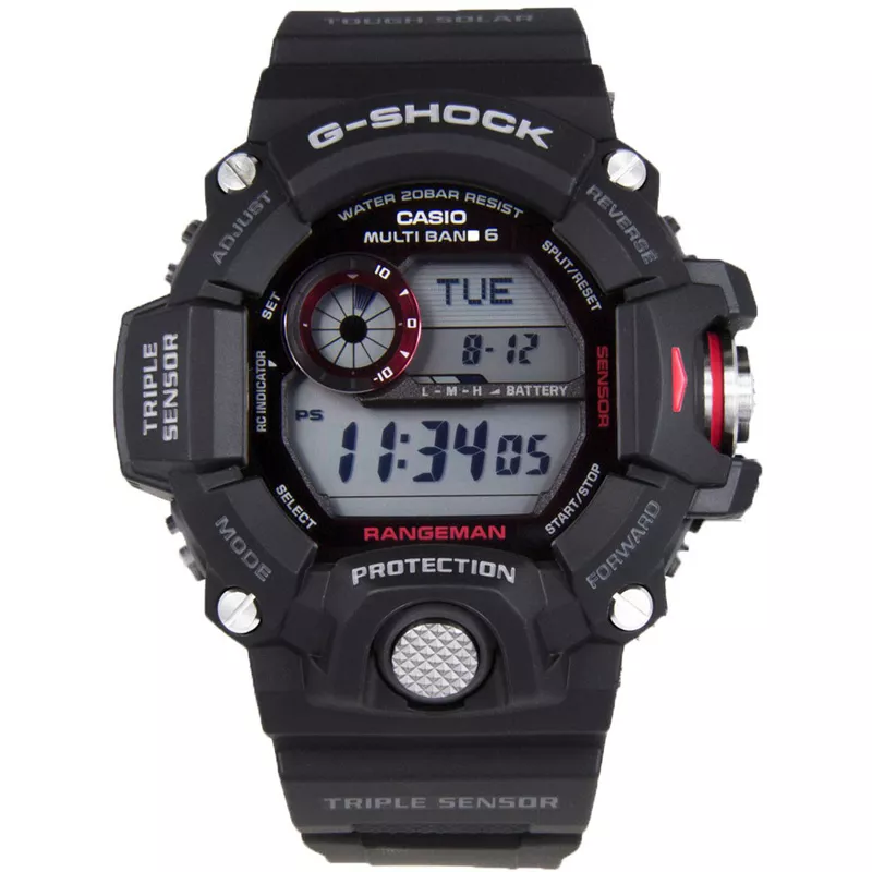 Les montres CASIO Rangeman GW-9400-1ER sont équipées de nombreuses fonctionnalités utiles, dont seuls les acheteurs de la gamme CASIO Pro Trek ont profité jusqu’à présent: un baromètre pour l’affichage des variations de pression atmosphérique, un thermomètre pour l’affichage de la température ambiante, une boussole digital et un altimètre d’altitude