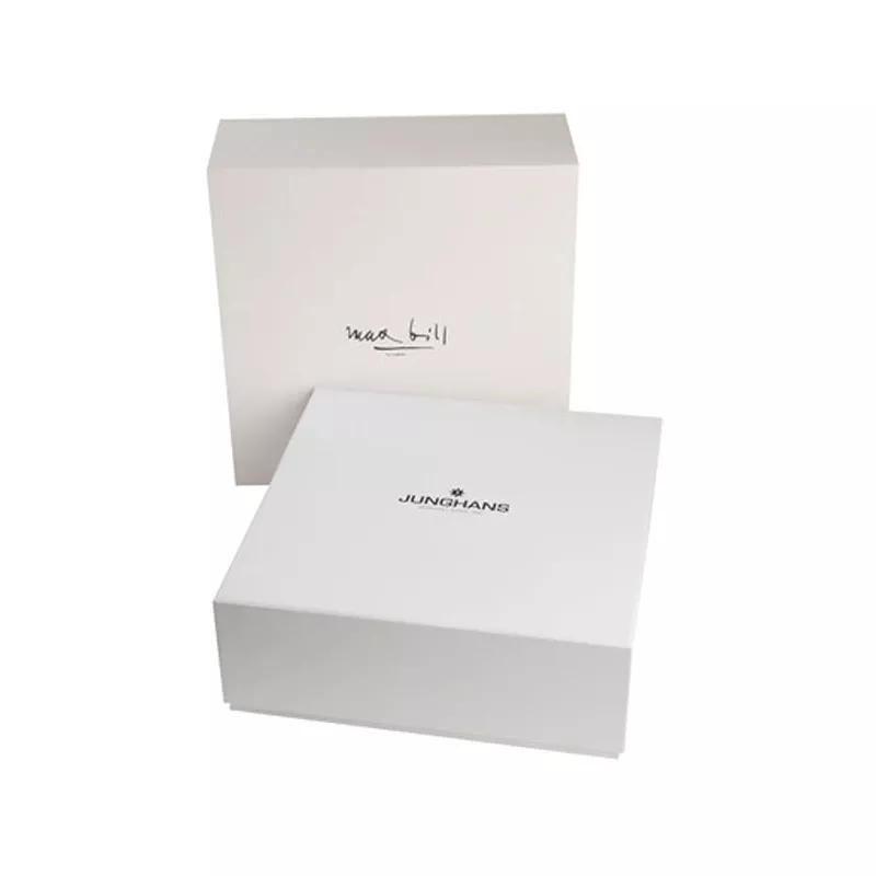16x17cm - Horloge de table radio-piloté exclusive Junghans par Max Bill. Le carré optique du noble accessoire reflète les proportions harmonieuses que le designer suisse a poursuivies dans ses créations.