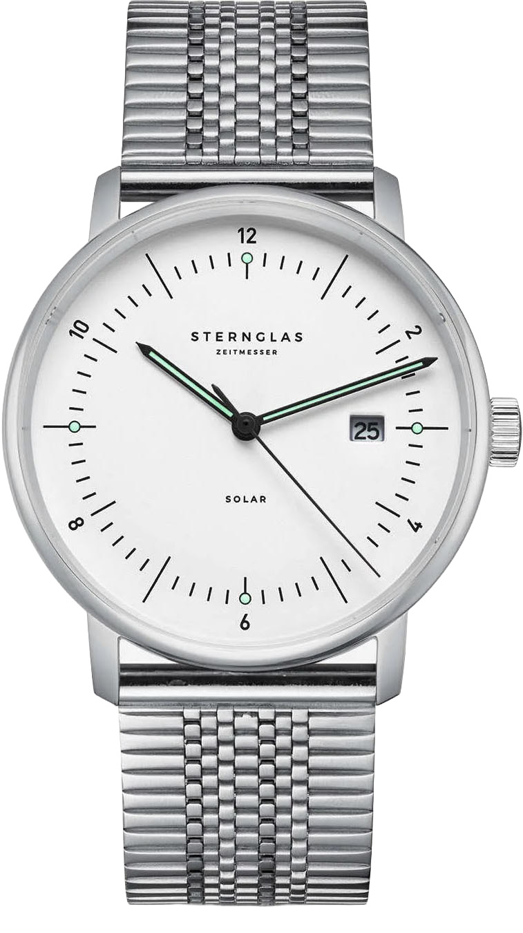 STERNGLAS Naos montre solaire blanc acier S01-NS01-ME08